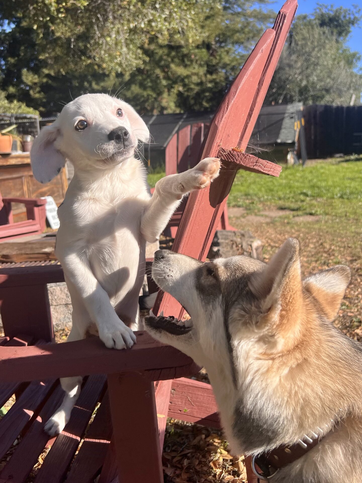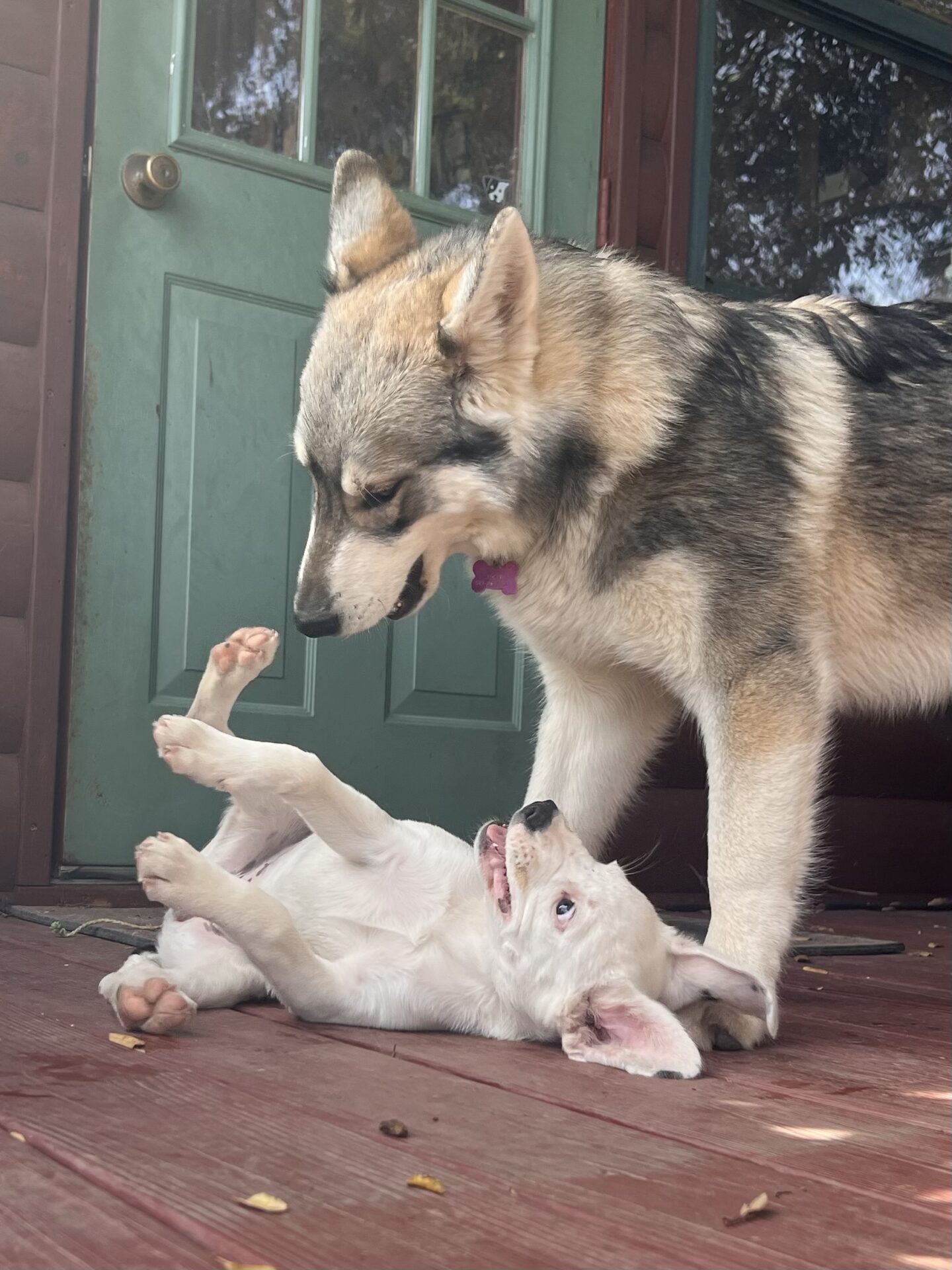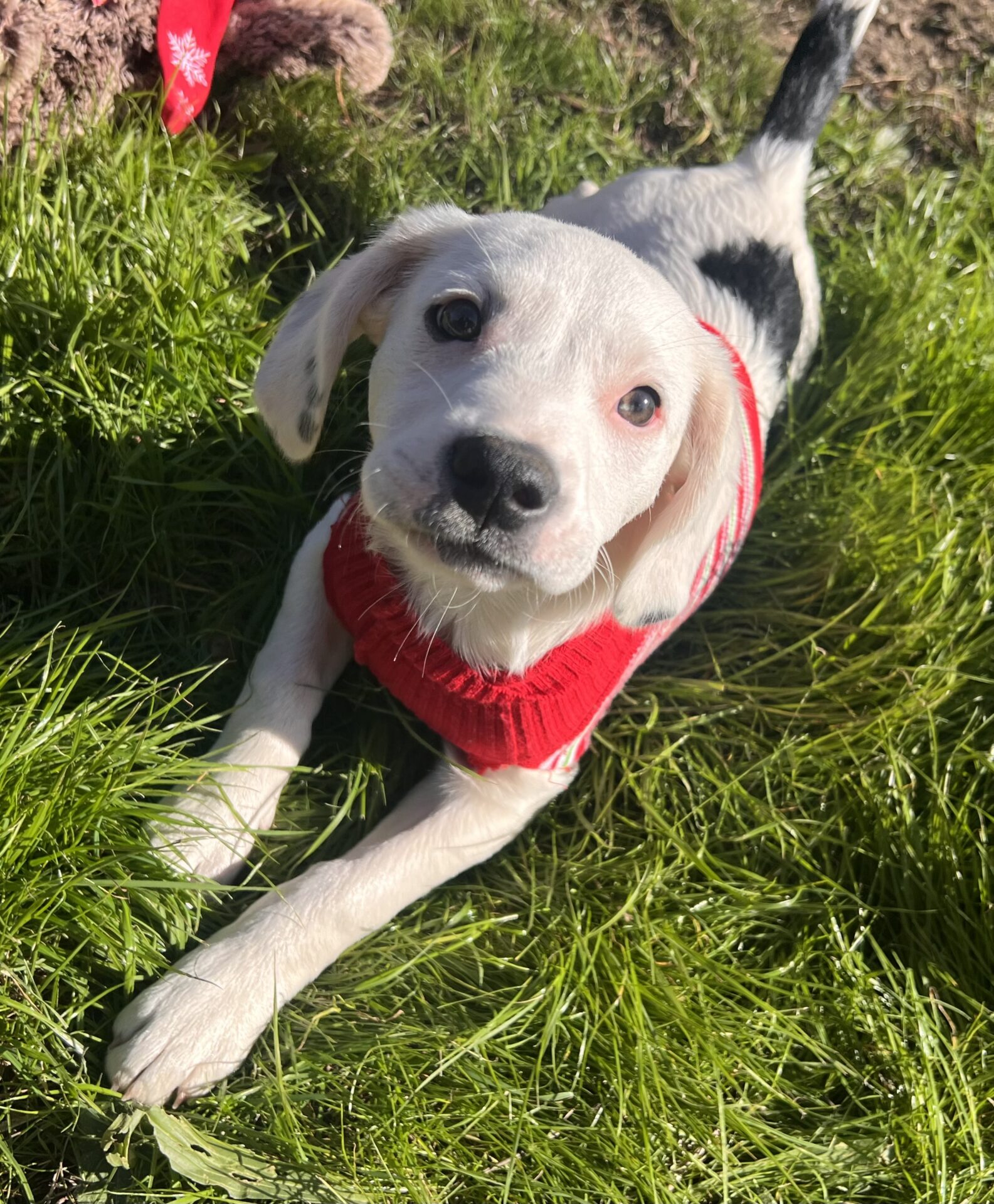 Plays with larger dogs daily and she holds her own! Keep your eye on our Insta page for Dot videos and updates.